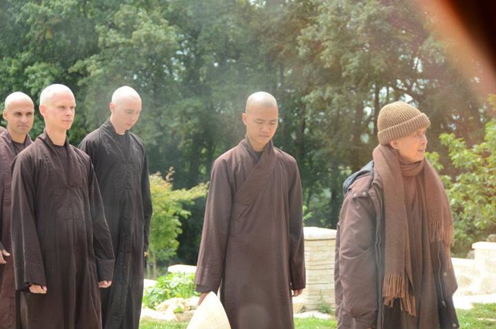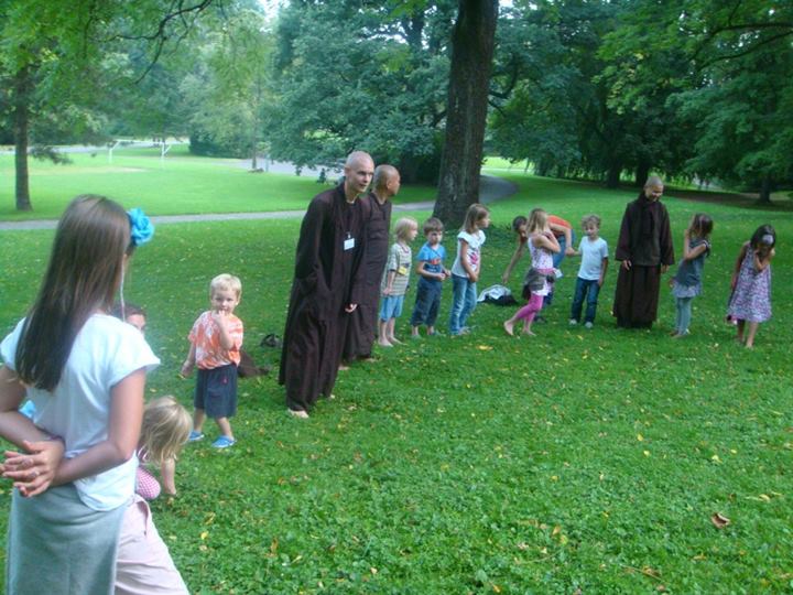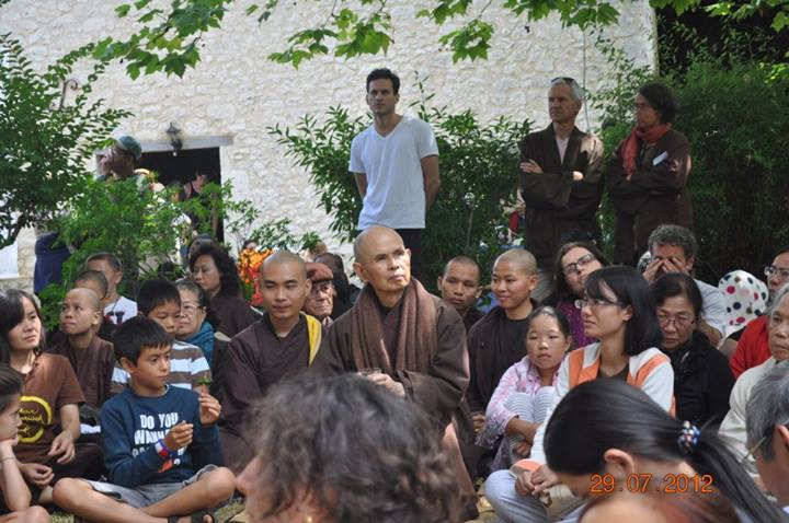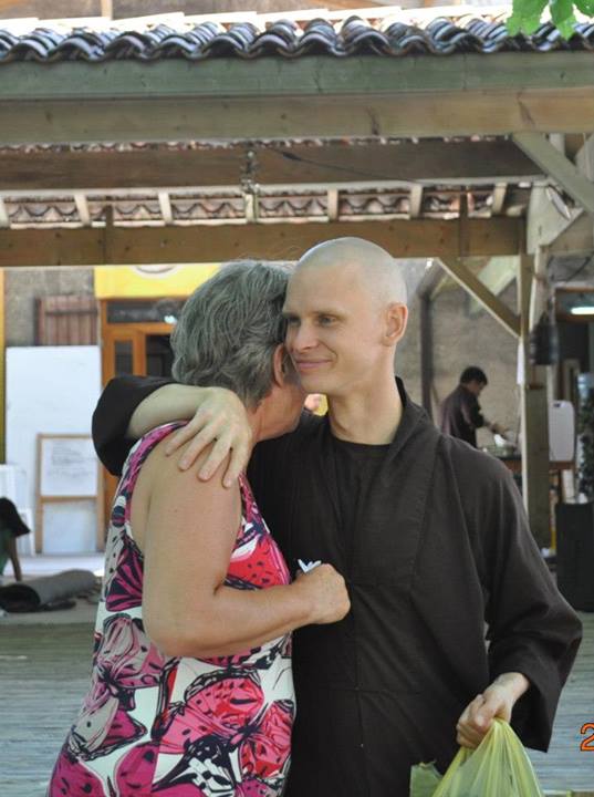 For monastics family is really important. Thay has always encouraged us to remain in contact with our family and nourish them with our happiness, freshness and joy. Recently we have renovated a hut in Son Ha, which we dubbed, Mummies Hut, this hut is only for family so that they can always come. Family will stay in PV for free and can visit us as much as they want. My parents visit me 2 times a year or more and they feel more and more that Plum Village is also their home. The brothers have become a bit of their children as well, so my mother sometimes jokingly says that she is getting poor from all the chocolate that she needs to buy for all of us. What is really happening is that my monastic family and my blood family integrate, we become a bigger family. Ofcourse everybody does this in their own way, for some parents to have a child as a monk or nun is very difficult, for others it is more easy. As a monastic you need patience and learn to accept your family as they are without enforcing your way of life on them. In the end it is your happiness, your freshness, your ability to be flexible and understanding that will inspire them.
