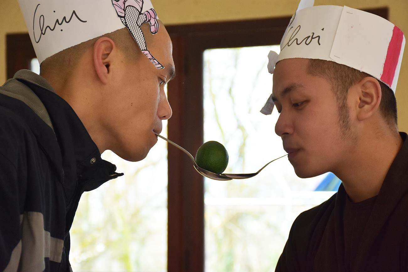 One of my Indonesian brothers used to say, “Don’t be naughty” before he left Plum Village for a retreat or home visit as a message that usually parents, older brothers, or sisters say before they leave home. When he moved to the other monastery, he said to me “Please be naughty!” I see this message as an encouragement for me to be more playful and joyful. Then I sent a message to him telling him that I’m doing well, and I’m becoming more naughty. If you don’t believe me, you can ask another brother who got the same message from him. As a baby monk, I enjoy my time to play and from time to time I ask my brothers, “Let’s di choi!”