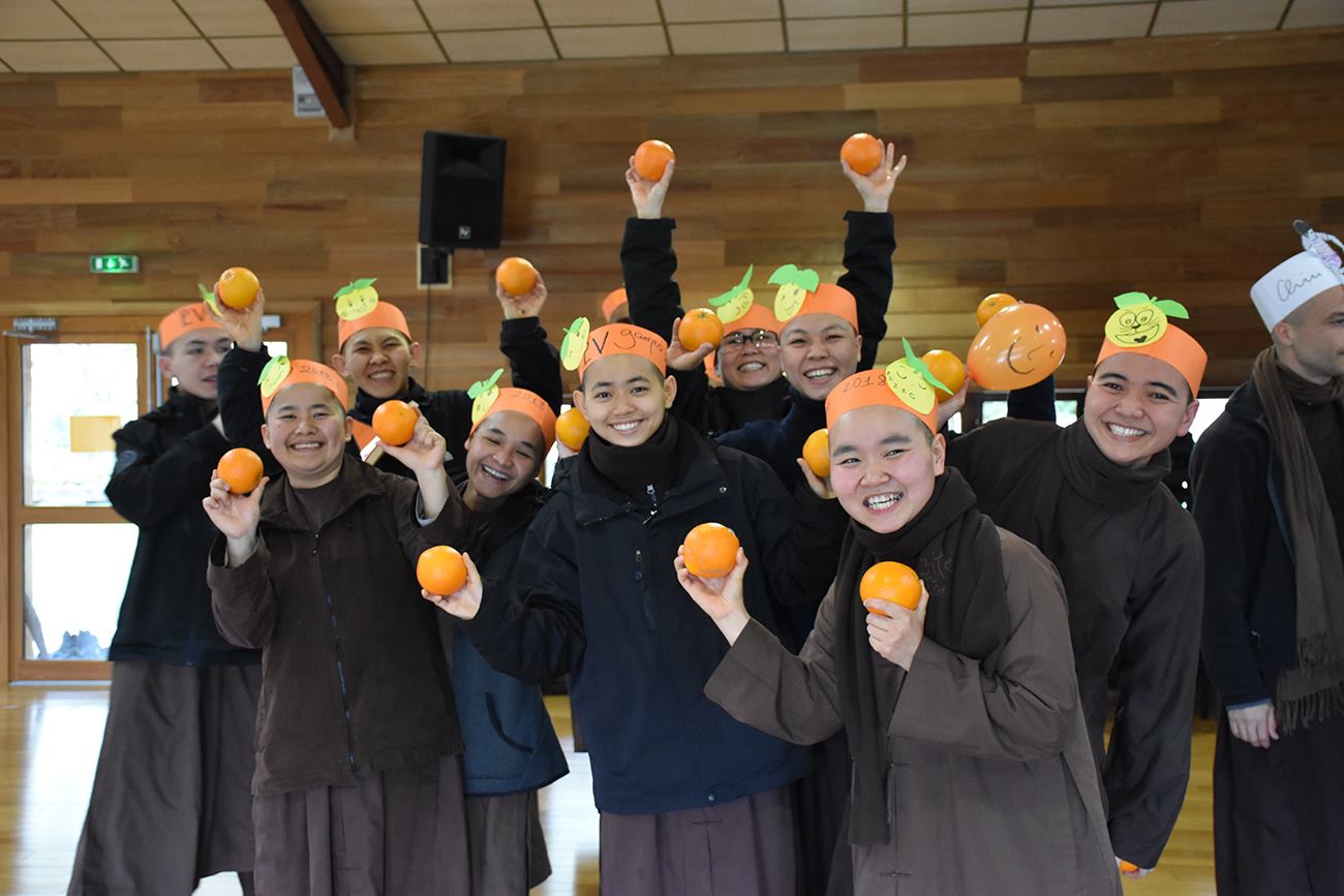 One time, Thay was asked, “How can the Western sisters and brothers be closer to each other like the Vietnamese sisters and brothers?” Thay answered, “It’s not about Western sisters and brothers. But also I think one other reason why other person can be closer to each other is because they like to play. So that I suggest that Western brothers and sisters need to play a little bit more, and be more relaxed. Because you think that playing like that is not a practice physically. So that’s why you don’t play. But technically play is a good Dharma door. So then you should organize to play more. Practicing sitting is also a play. You should not be too serious. You should play more.”