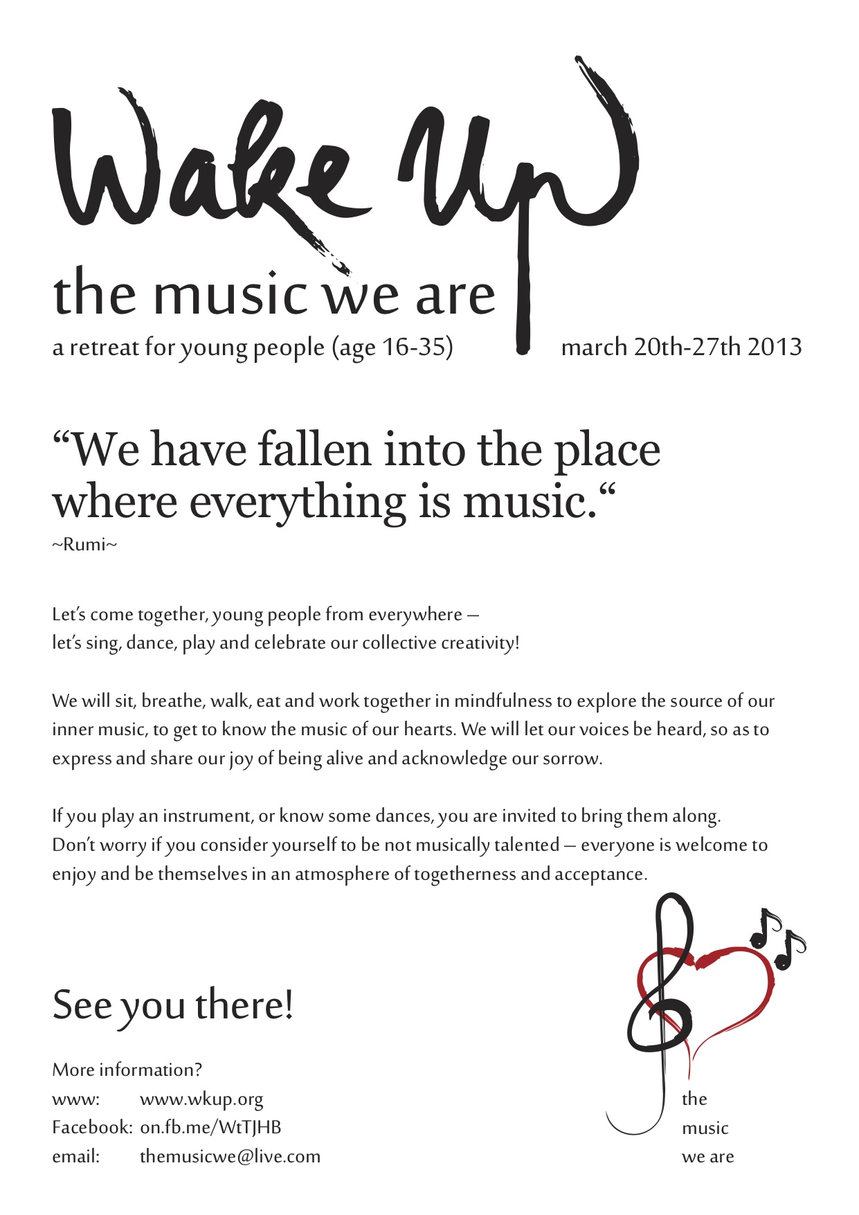 If you have any questions about the retreat, please email us at: themusicwe@live.com