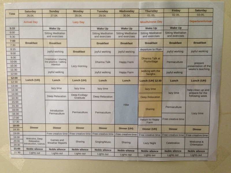 Durante un mes se realizó en Plum Village el retiro Wake Up de permacultura. Hubo varios asistentes que estuvieron una o dos semanas, y varios otros que permanecieron durante todo el retiro para recibir lecciones de permacultura y trabajar con el equipo Happy Farm.