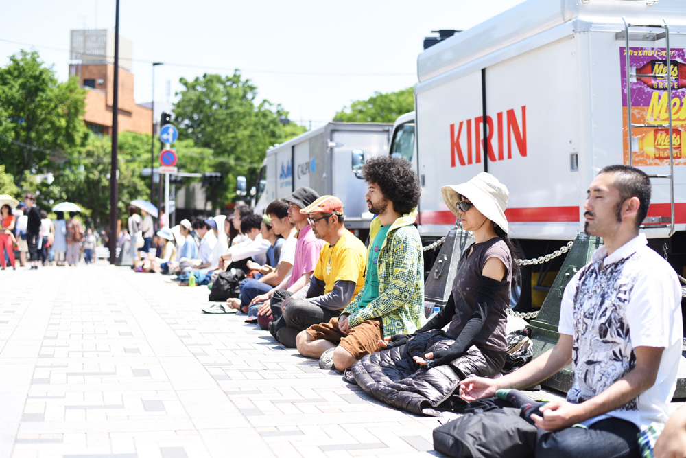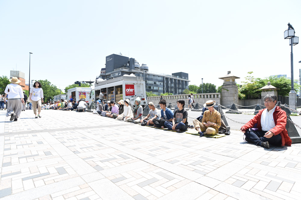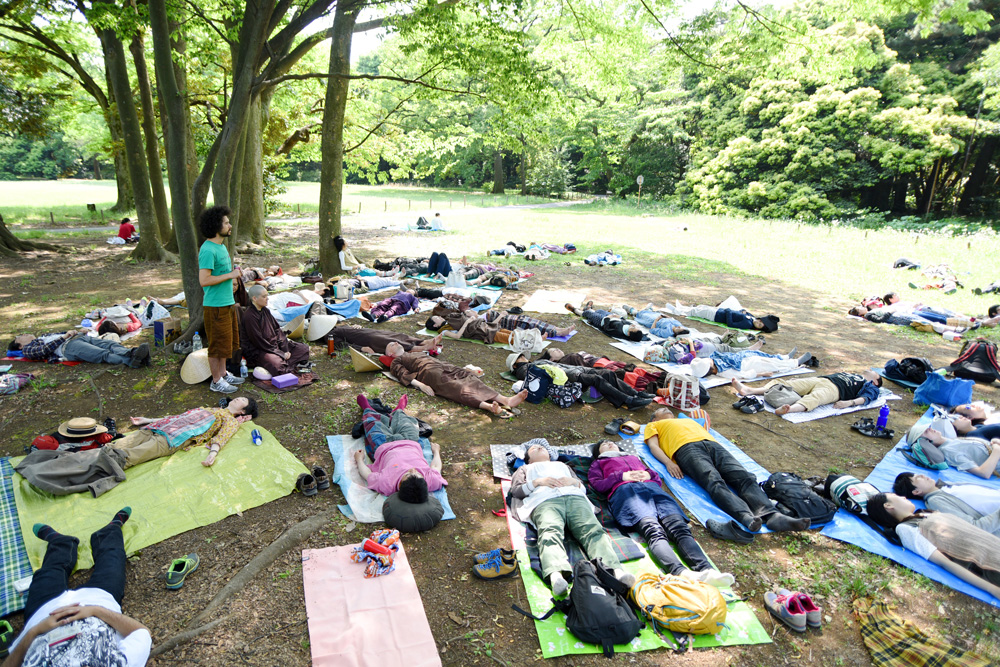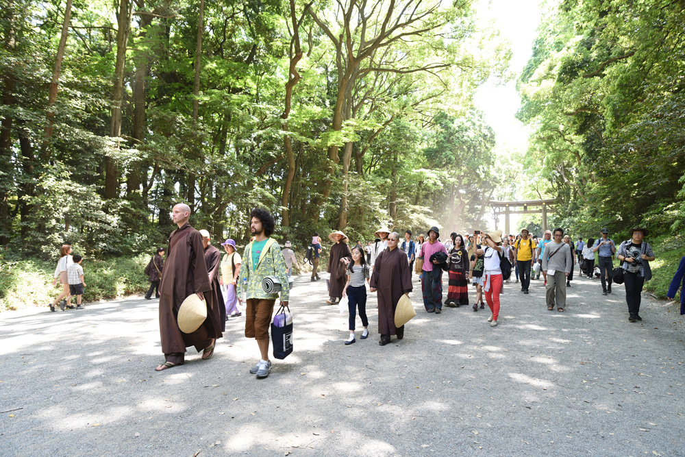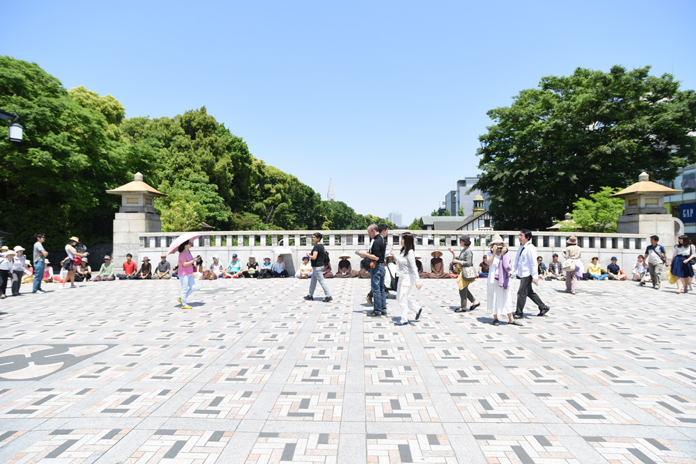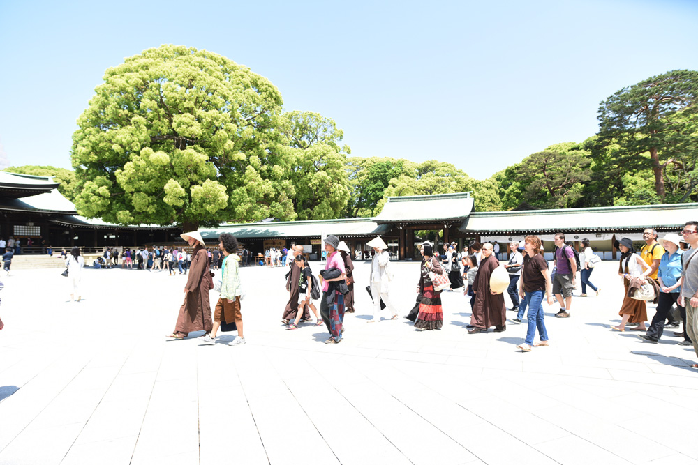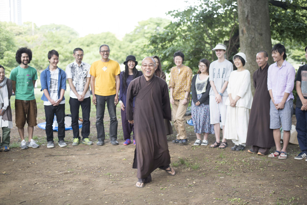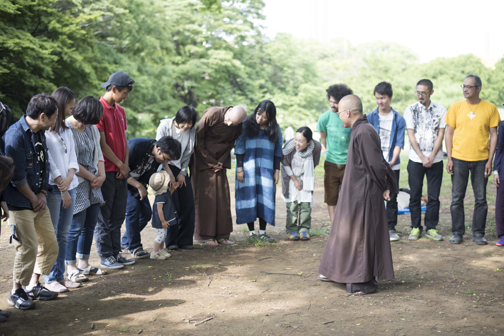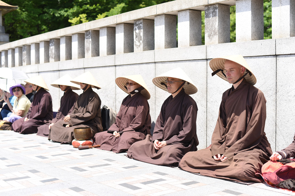 On Saturday, 9 May 2015, monastics from different Plum Village practice centres and about 100 young people participated in a meditation flash mob on Harajuku Bridge, bringing a unexpected energy of stillness and concentration to the bustling heart of the city.