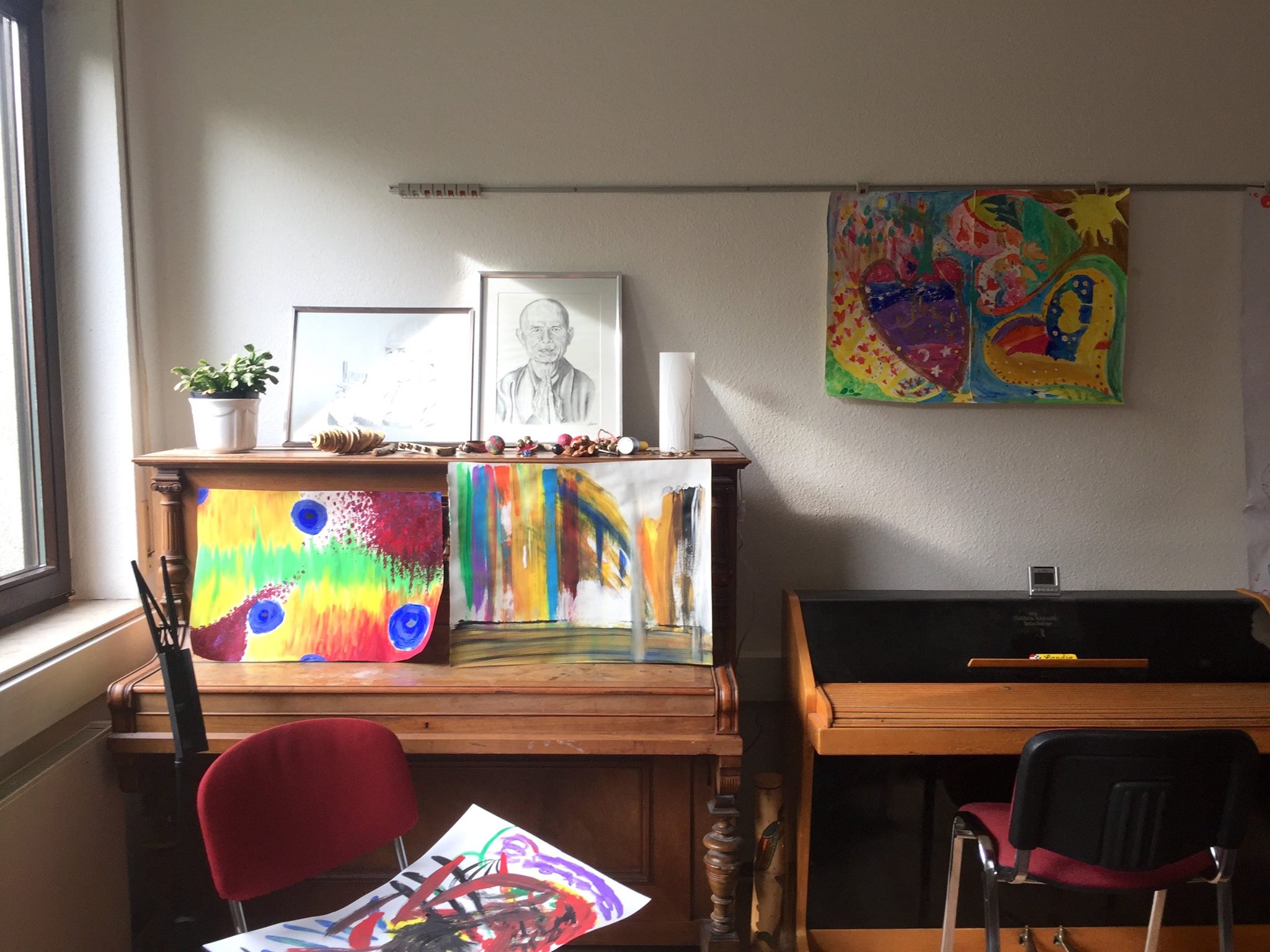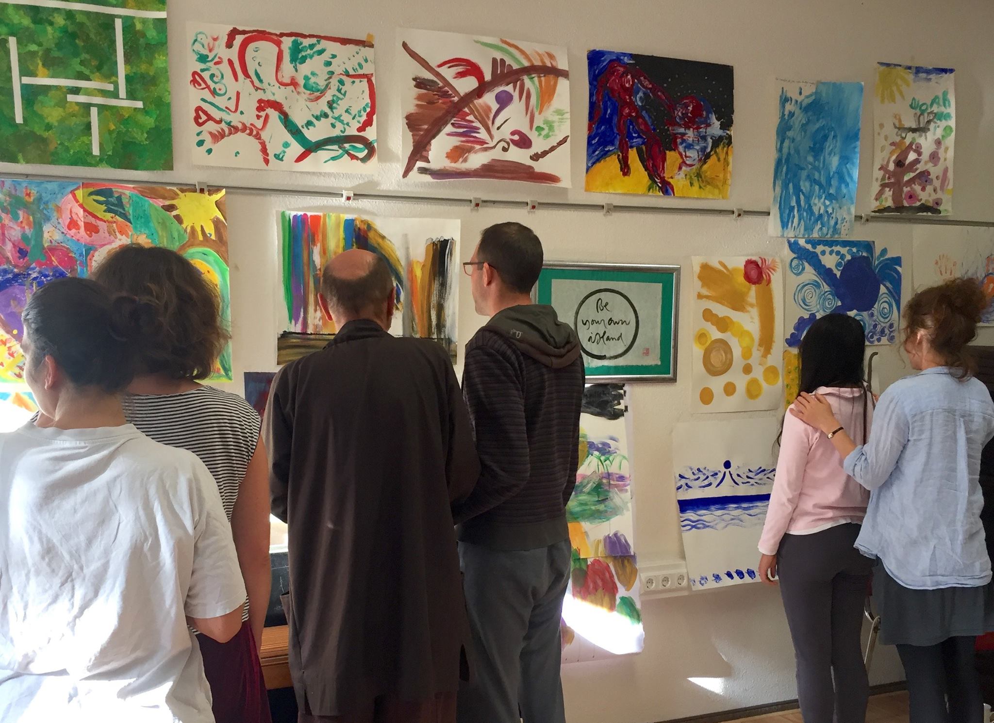 For me the week touched a beautiful place of non-judgement, to make art in a safe atmosphere and to play and experience our inner artists. One of the themes we wove in was the idea of the inner child that we can take the hand of the ‘little us’ of 5 years old and encourage and nurture them within us – the sensitivity, the wonder and understand the makings of who we are now. We stood in front of the paper in the painting sessions and just made shapes and colours, surrounded by others doing the same. I found such a peaceful time, and my inner child enjoyed that!